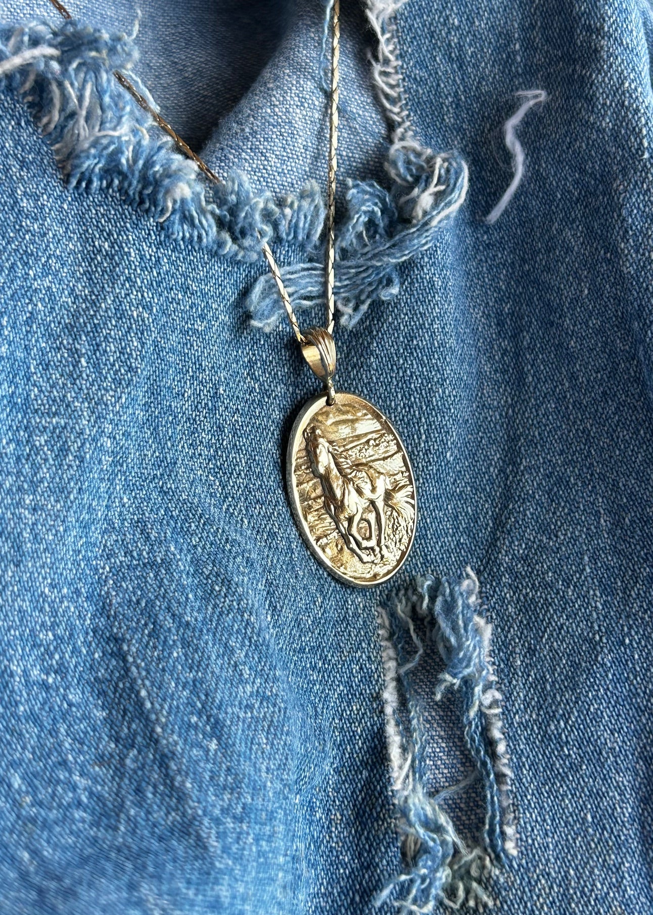 Each piece is 100% handcrafted, giving it the character and authenticity of true artisan work. Offered in 10k yellow gold for a warm, golden glow or sterling silver for a cool, classic finish, the Free Spirit Pendant feels like a keepsake passed down through generations — rugged yet refined. Perfect alone or layered with others. Chain not included.